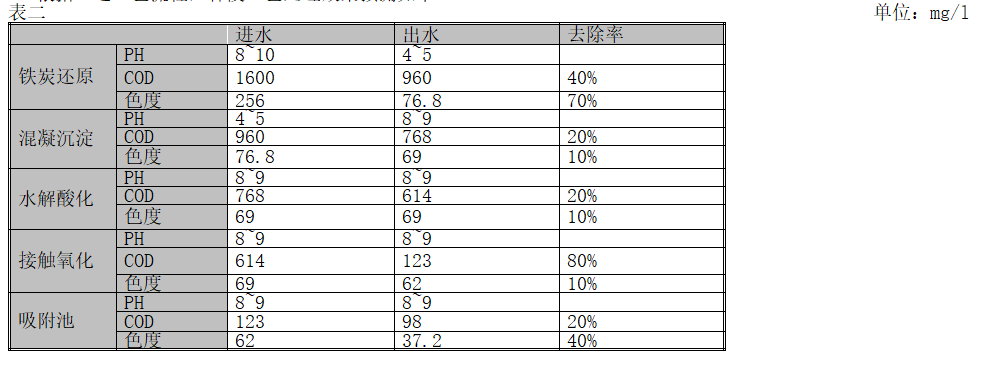 鐵屑微電解需在酸性(pH<6)溶液中才能順利進行,微電解前需向廢水中投廢酸調(diào)pH值至3.5~6,電解后再投石灰以促其形成氫氧化鐵沉淀,微電解產(chǎn)生的新生態(tài)Fe2+、Fe3+形成Fe(OH)2和Fe(OH)3凝聚劑,其具有良好的吸附和凝聚性能,也能有效去除廢水中的COD和色度。