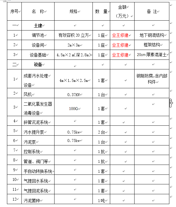 污水處理區塊范圍:從污水進入調節池至標準排放口之間構筑物(包括總平面布置)及配套設計。而污水處理站外的廢水進水管與外排出水管不包括在本方案之內。