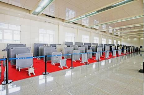 4.通祥集團首先將免涂油灰技術應用到壓濾機制造上,“通祥集團”壓濾機所有金屬件全部經過高速離心拋丸機噴砂處理,消除銹跡和氧化鐵皮。采用環氧云鐵底漆噴涂處理后,直接涂飾丙烯酸聚氨酯環保型油漆,不僅保護了環境,更重要的是提高了油漆的附著力和壓濾機的防腐等級。